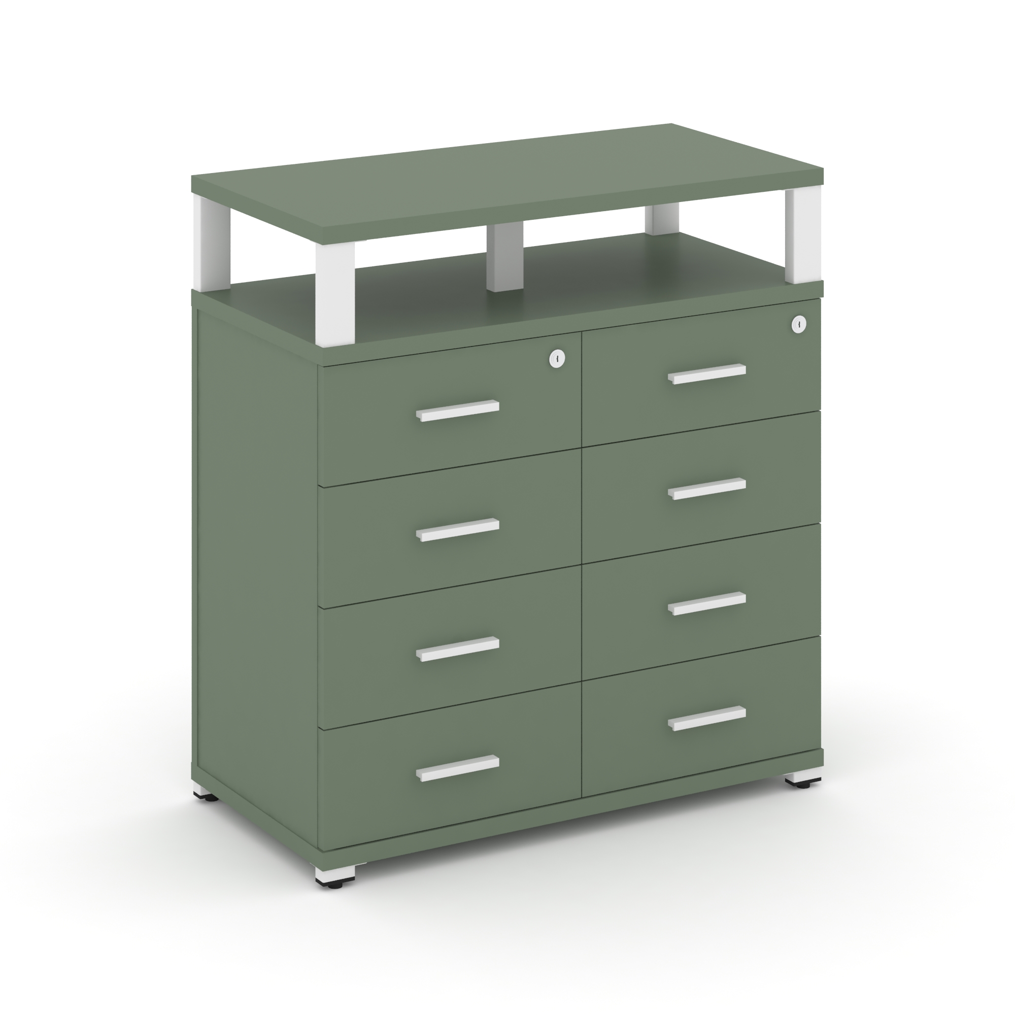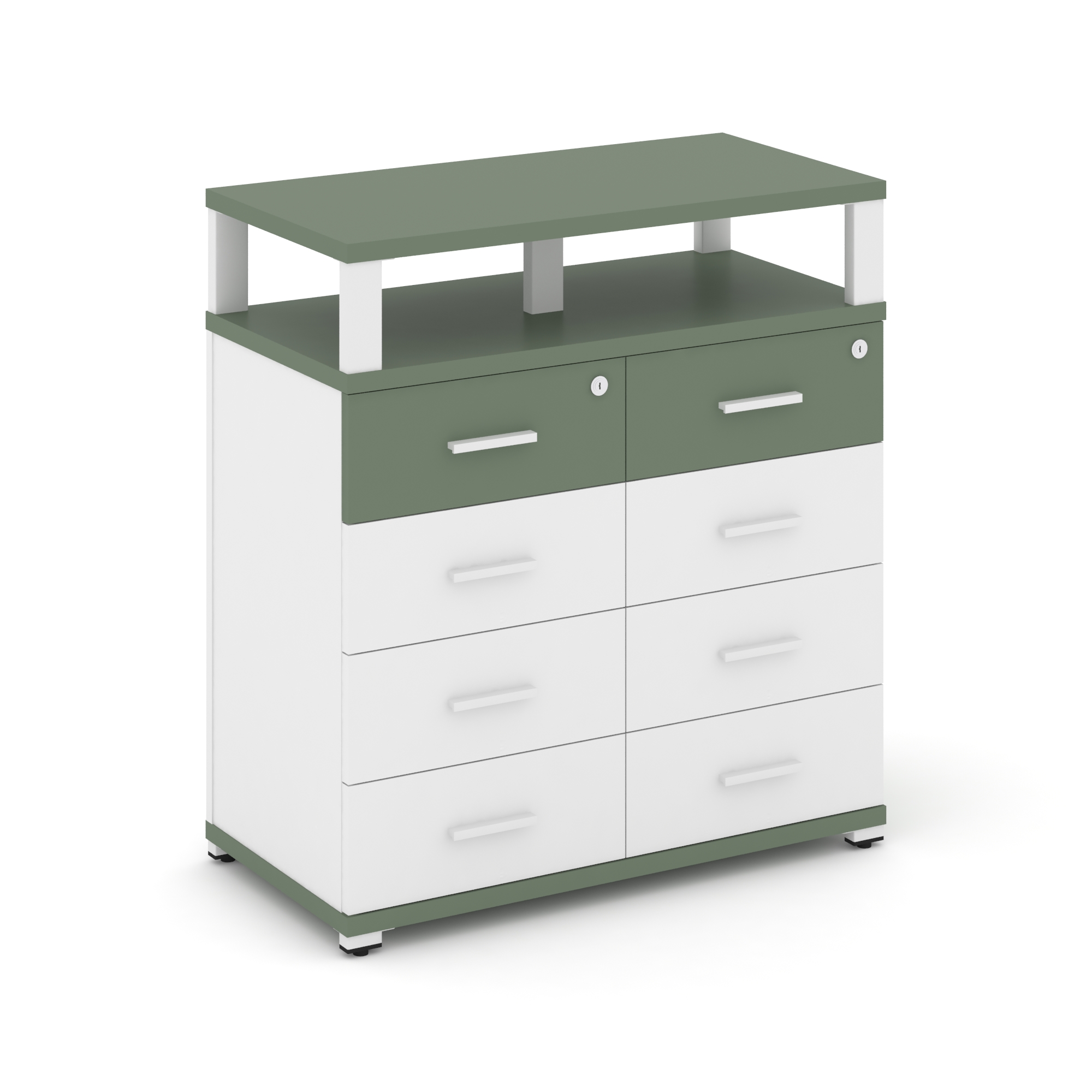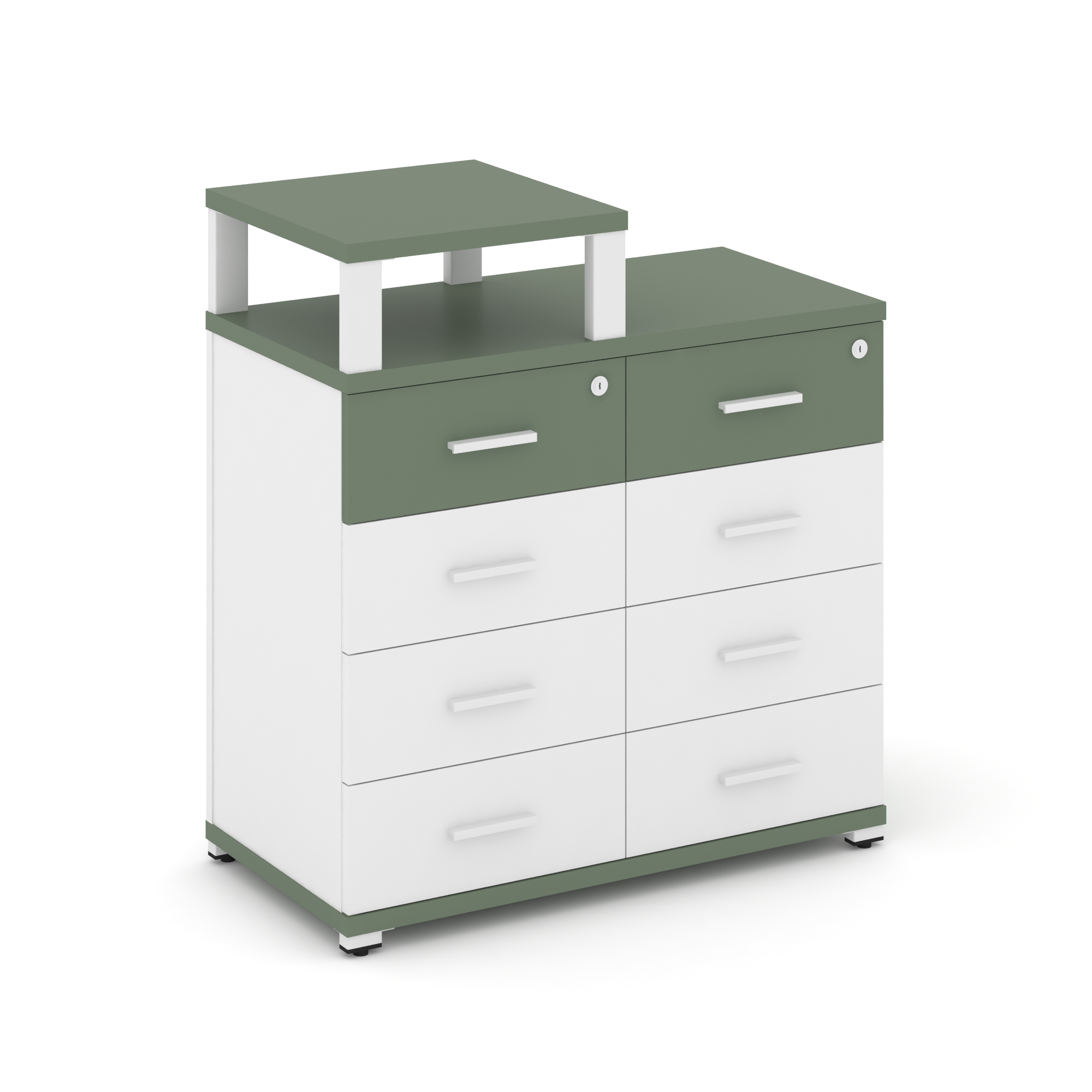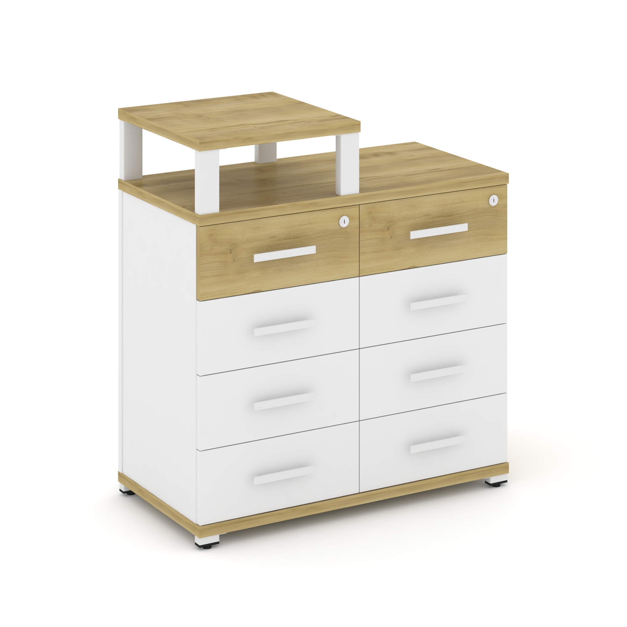 Concept Тумба приставная широкая 8 ящ. с надставкой широкой CN.TSP-015 W Кобо/Металл Белый 836*420*9