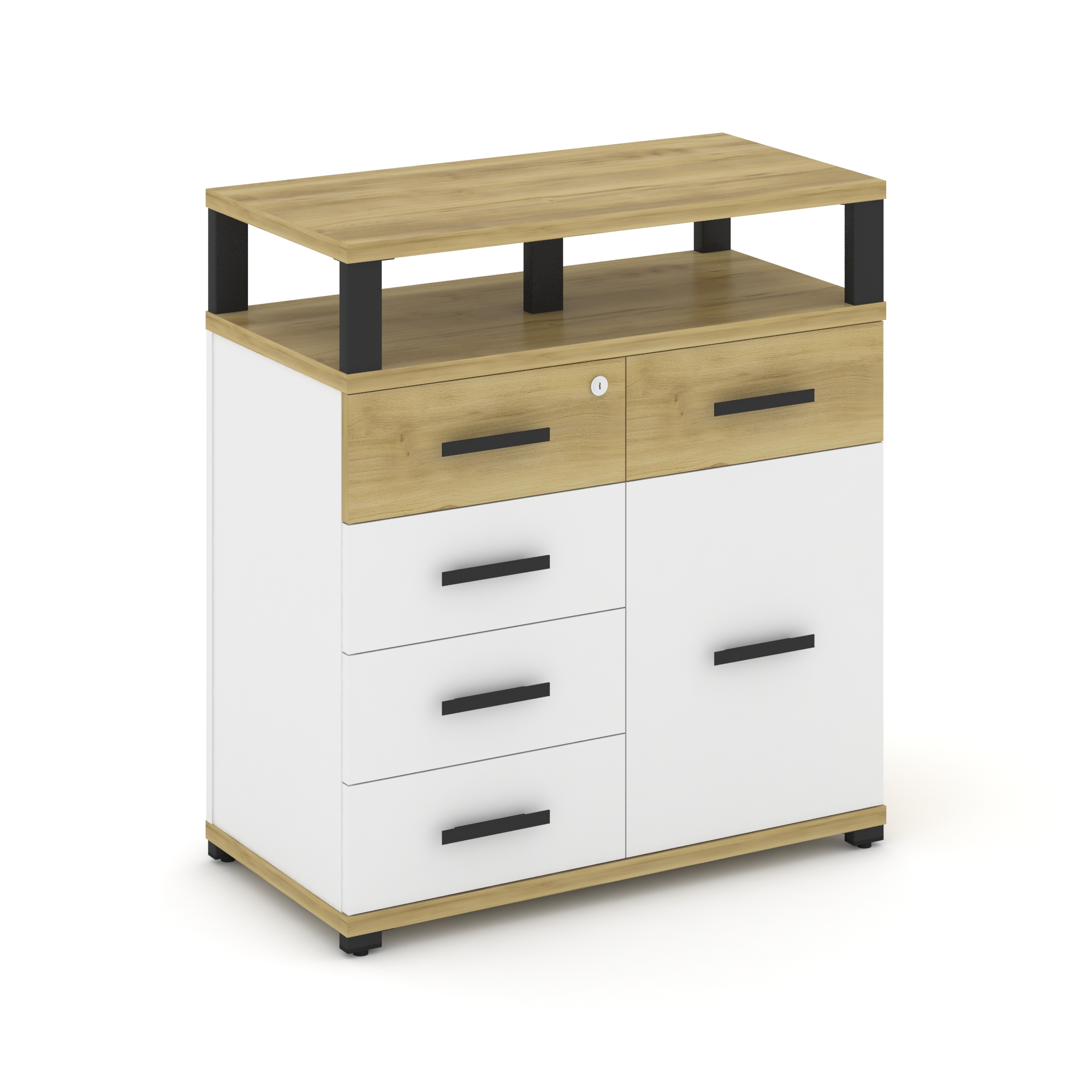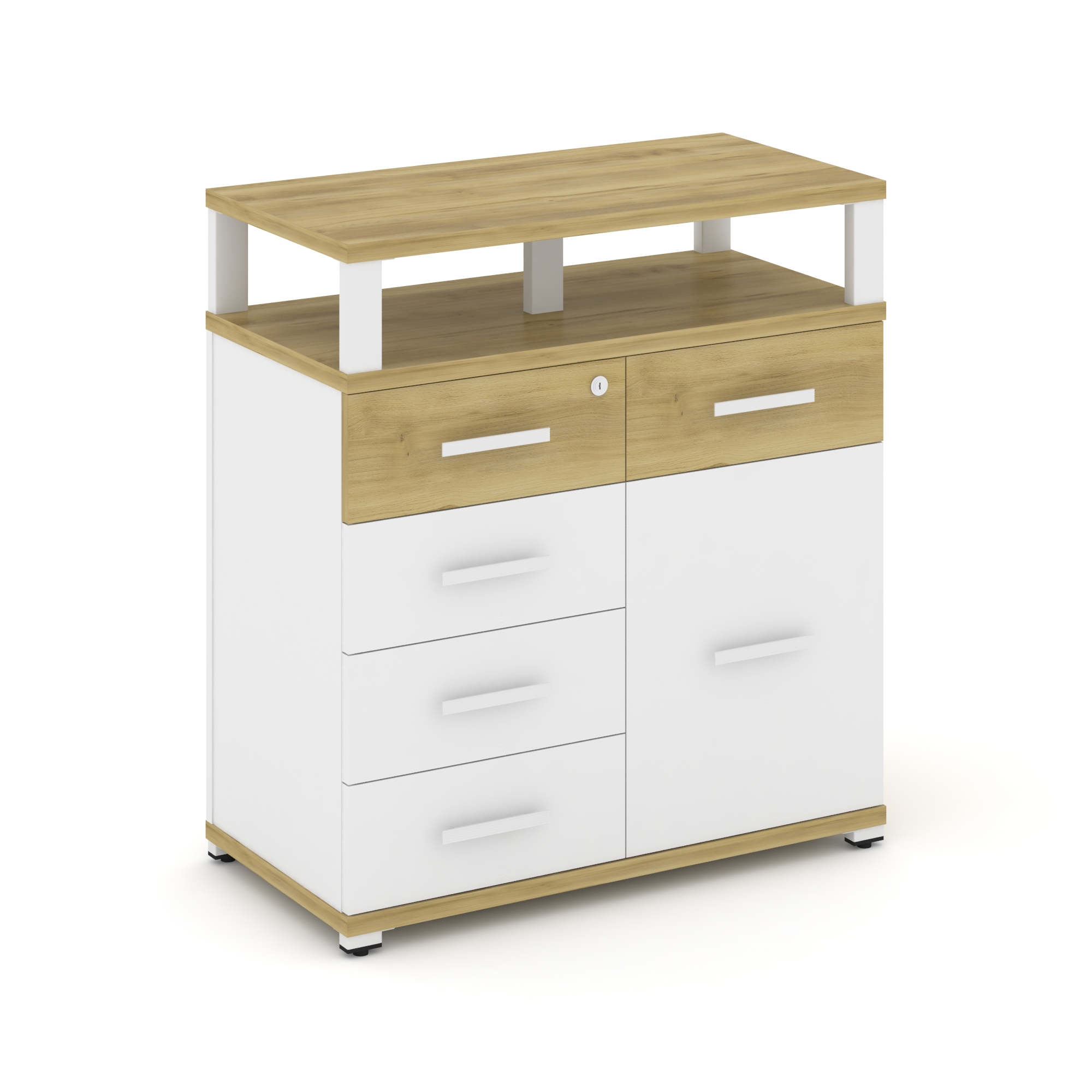 Concept Тумба приставная широкая 5 ящ.+1 распаш. фасад с надставкой узкой CN.TSP-017 B Дуб Мали/Белы