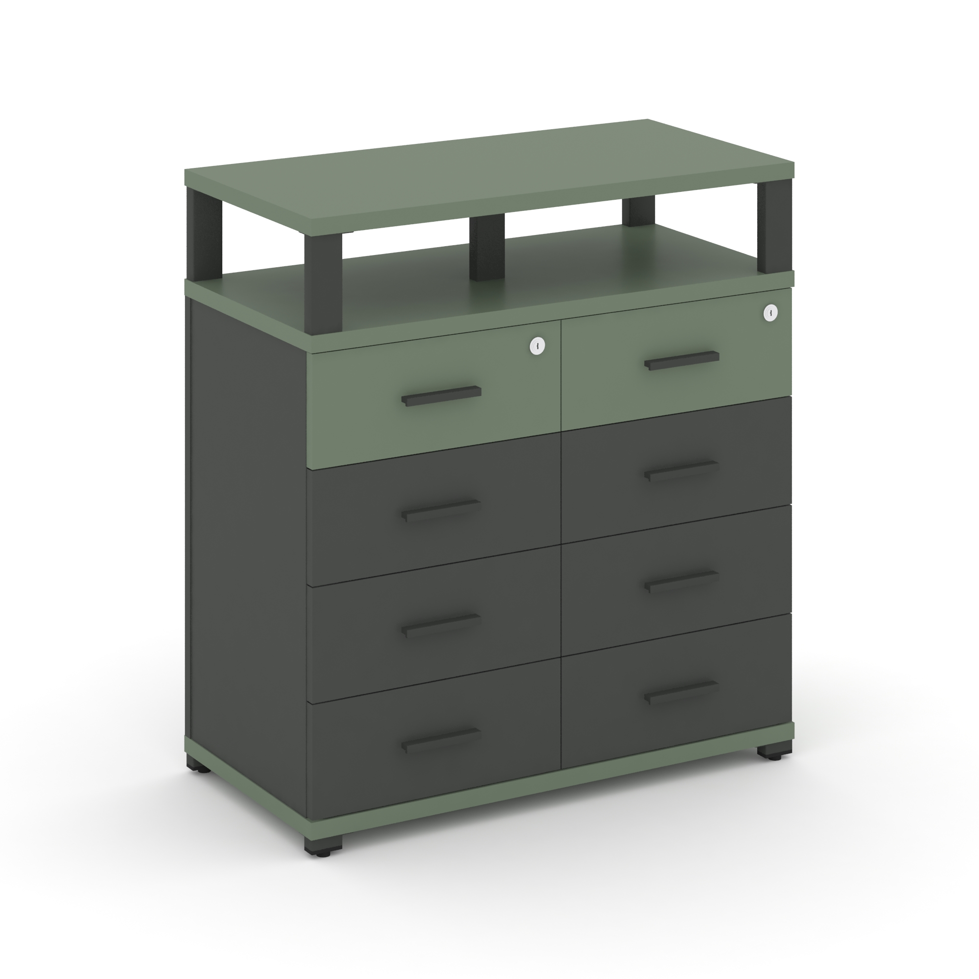 Concept Тумба приставная широкая 8 ящ. с надставкой широкой CN.TSP-015 A Кобо/Антрацит/Металл Антрац