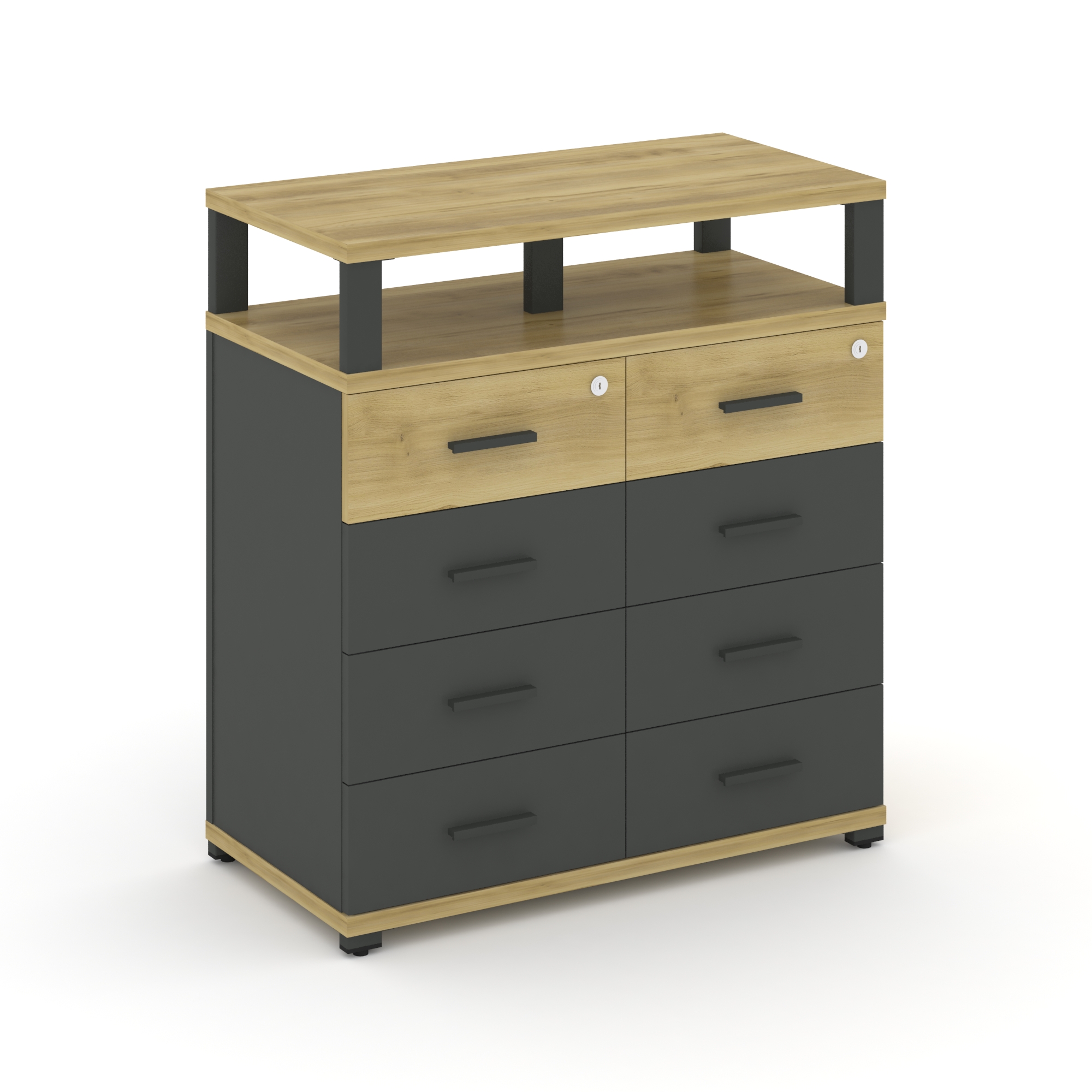 Concept Тумба приставная широкая 8 ящ. с надставкой широкой CN.TSP-015 A Дуб Винченцо/Антрацит/Метал