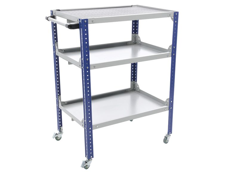 - Перфорированные боковые стенки тележки, позволяющие размещать на них аксессуары (навеску для экранов)